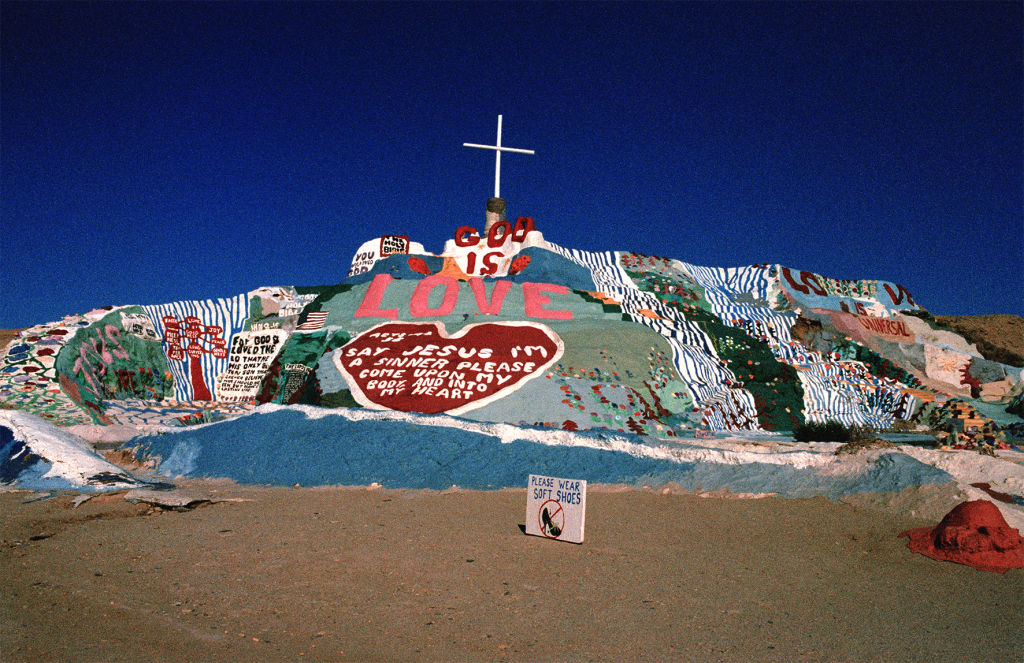 Under 2016 till 2018 spenderade jag mycket tid i södra Kalifornien. Jag hängde i ett community ute i öknen som heter Slab City. Jag lärde mig otroligt mycket om fotografi i den kontexten och det var väldigt inspirerande. Slab City kallas för “The last free place” och är från början en gammal militärbas från andra världskriget som övergavs. Nu bor det flera hundra människor där året runt. De flesta lever utan indraget vatten och elektricitet i husvagnar, tält eller i egenbyggda hus. Det är en väldig blandning av människor och mycket konst, en fascinerande plats. Slab City ligger också väldigt nära Salvation Mountain som är ett känt landmärke och konstprojekt skapat av Leonard Knight.