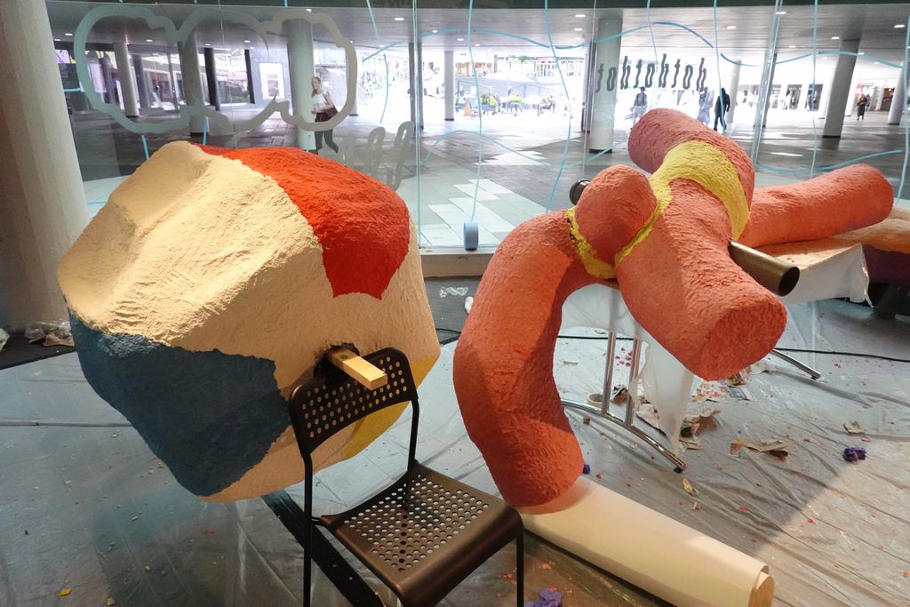 We’re trying to find lots of different ways to push how people see craft, and this project is a great opportunity to do so. We’ve had workshops with kids to make additives to the installation as well. There’s going to be five sculptures in Papier Mache that are two to three meter big. The tiles of the square look like the bottom of a swimming pool so that’s what we want to build on.