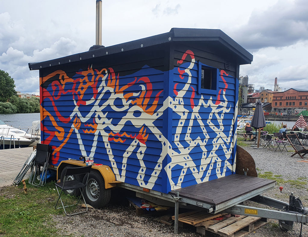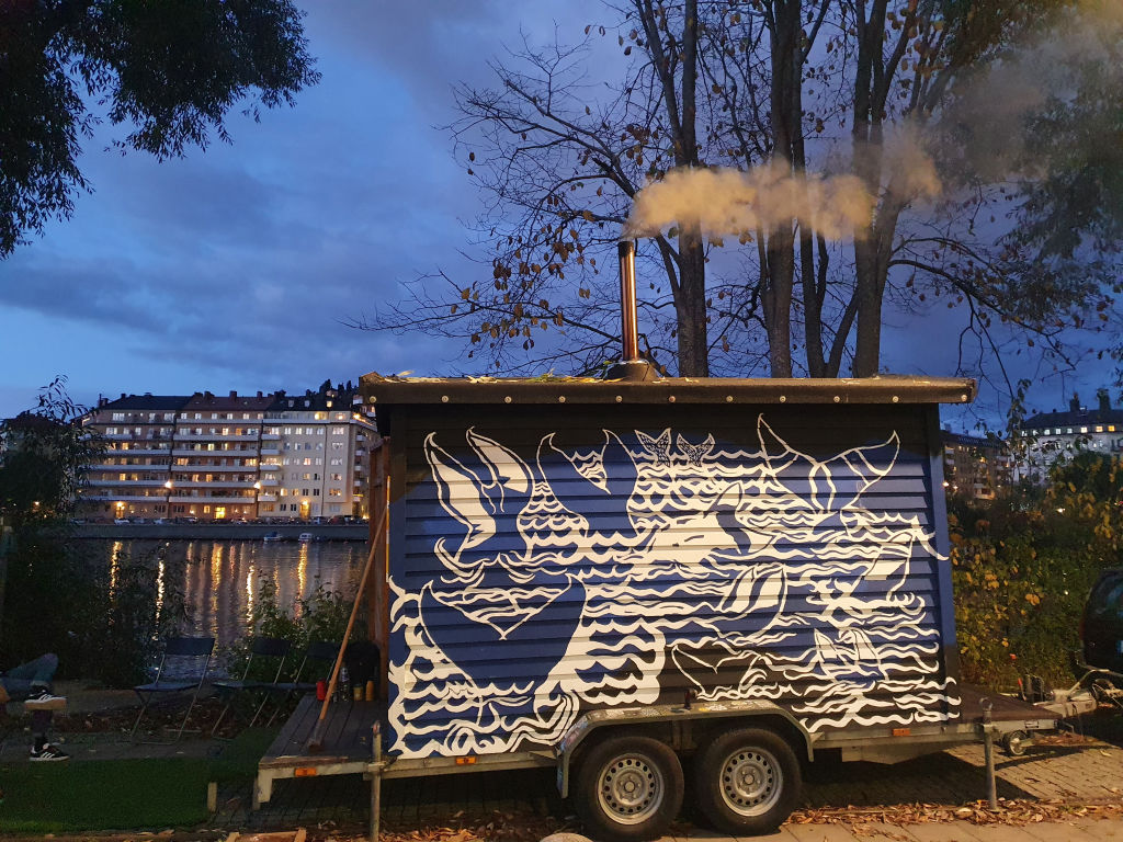 Det är en ruggig lördag i mitten av december. Jag går längs Liljeholmskajen i Stockholm, nära Cementas fabrik och världen är grå grå grå. Men plötsligt ser jag rök stiga upp ur ett färgglatt litet hus som står parkerat nära vattnet. Vad är det? Jo, en (konst)bastu. Några veckor senare möter jag konstnären Anton Wiraeus på videolänk. Vi planerade att ses “på riktigt” men corona kom i vägen och här är vi nu.