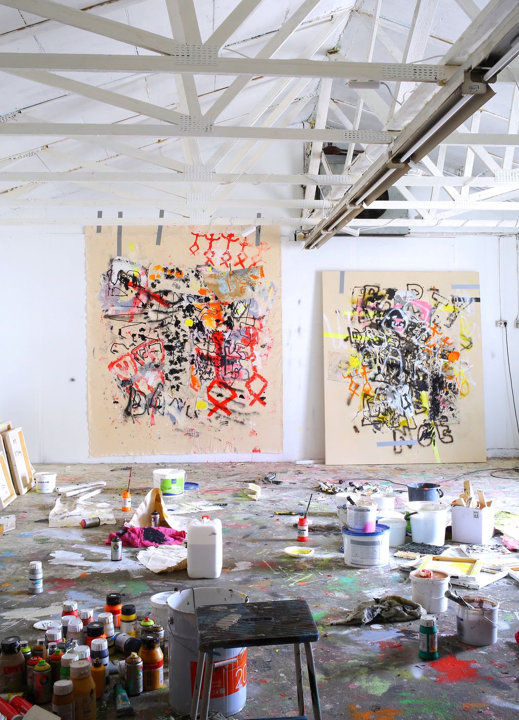 I'm inspired by layers on the streets such as tags, layered flyers, marks, gestures, Berlin graffiti areas, abandoned places and houses, children's drawings, pictures that come straight from the heart, and crazy and bold art pieces.