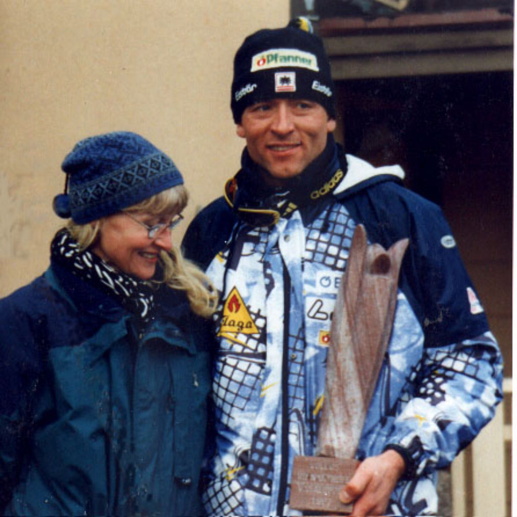 - Jag vann en tävling 1995 för att få hugga fram ett originalverk i älvdalskvartsit till vinnartrofé i Vasaloppet. Älvdalskvartit är den sten som bryts i Vasaloppsområdet i Mångsbodarna. Jag högg en ny trofé varje år mellan 1996 till 1999. Skulpturen är 40 cm hög och jag motiverade formen med att den skulle kännas och se ut som en blomma att få i handen. Skidorna ligger längs med kroppen och i toppen kan man se både tulpanen och ett “W” som står för Wasa. Jag tänkte också att figuren har en toppluva som syns mellan skidspetsarna som var en blinkning till Mora Nisses mössa eller alla skidåkares luvor. Jag gjorde också en något mindre variant i brons till bästa dam.