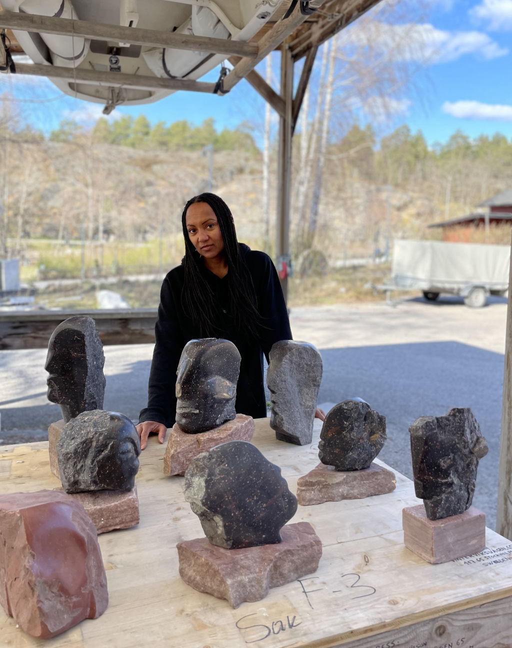 Sedan tio år tillbaka bor dock Yemisi i Sverige och jag möter henne i ateljén vid Vinterviken i Stockholm. Det är en stor ateljé fylld med byster, ansikten och torsos i sten. Yemisi berättar om sin bakgrund och att hon inte kommer från en familj där “alla var tvungna att bli läkare och advokater”, men att det aldrig varit en självklarhet att bli konstnär.