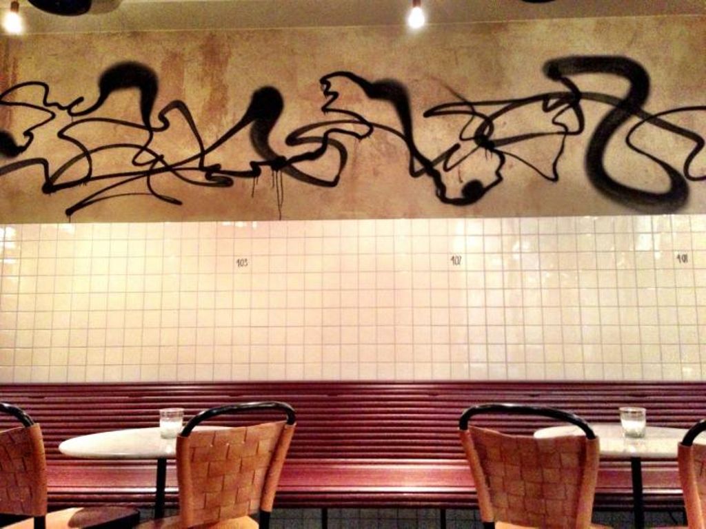 På fredagar kommer du springa på kostymnissar och mediapersonligheter. Tidiga förmiddagar är däremot en gyllene tid att njuta av konsten här. Menyerna av Jockum Nordström och de glaserade toalettstolarna av Roger Andersson är svåra att missa. Desto färre uppmärksammar fönsterutsmyckningarna av Gunilla Klingberg, öltapparna i Lilla Baren av Sara Söderberg, väggmattan av Märta Måås-Fjetterström eller affischen mellan Lilla Baren och köksavdelningen av Jonas Nobel.