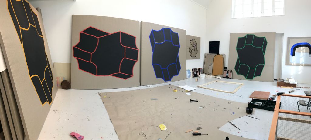 Jag tänker att det sker i någon form av växelverkan. Eftersom att jag inte vet vad det är jag söker så är det ju bara en intuition, men sen ger jag mig själv de här ramarna då jag behöver ha någonting att utgå från oavsett om det är skulptur eller måleri.