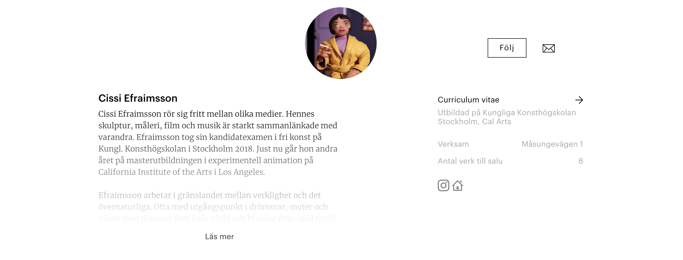 Informationen i ditt CV bidrar till att besökare känner sig trygga nog att köpa din konst. Glöm därför inte att uppdatera ditt CV kontinuerligt och sök gärna inspiration från andra konstnärer.