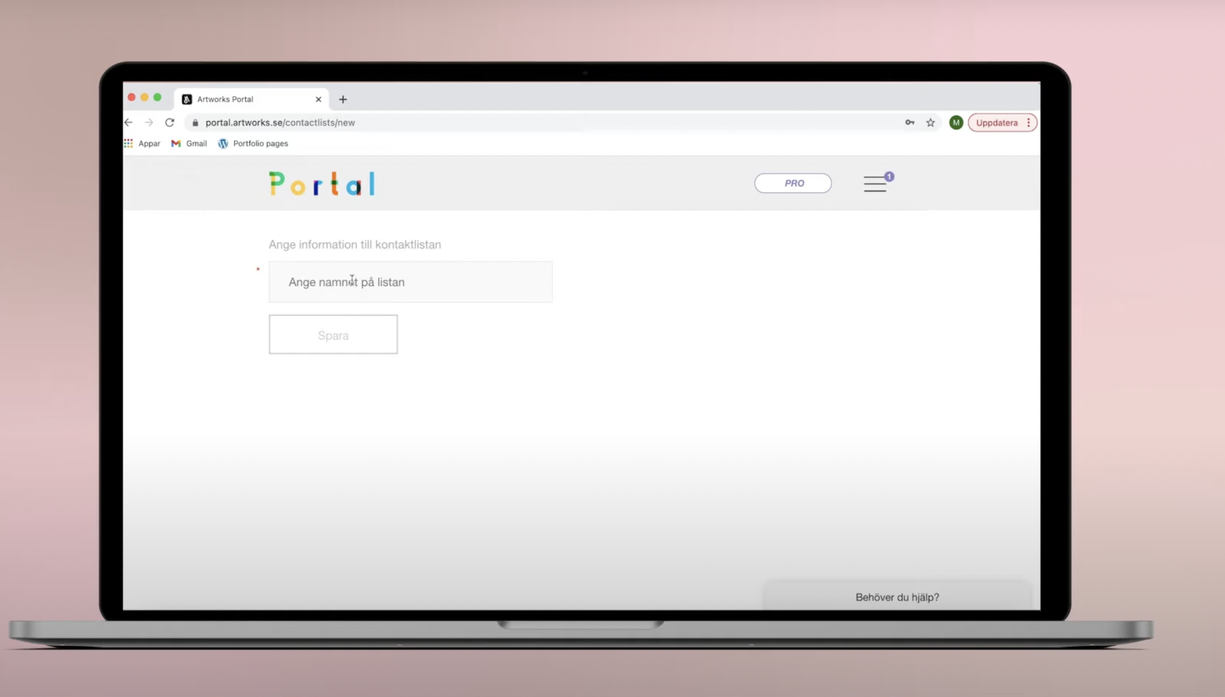 Börja med att ladda upp dina kontakter och därefter kan du skicka ut designade mail med tex nya verk eller inbjudningar, direkt genom Artworks.